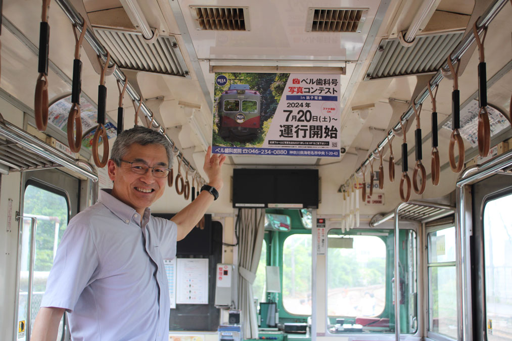 車内にはベル歯科号フォトコンテストの中吊り広告があります。たくさんの方に見ていただけるといいな。